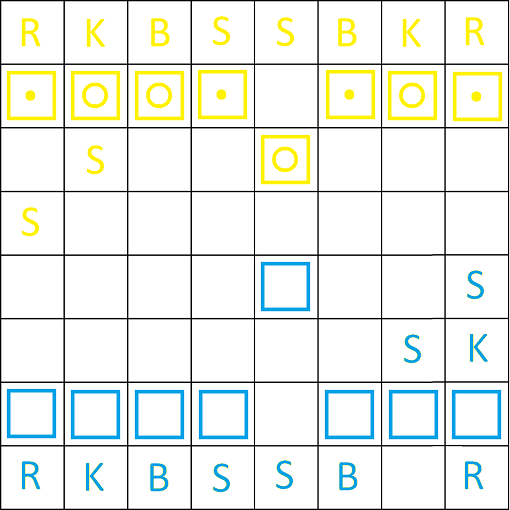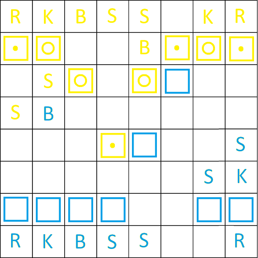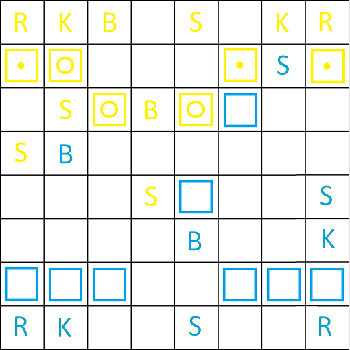 Yellow rook captured a seahorse. Bad things are about to happen, but at least rook got out of the way and chalked up a seahorse.